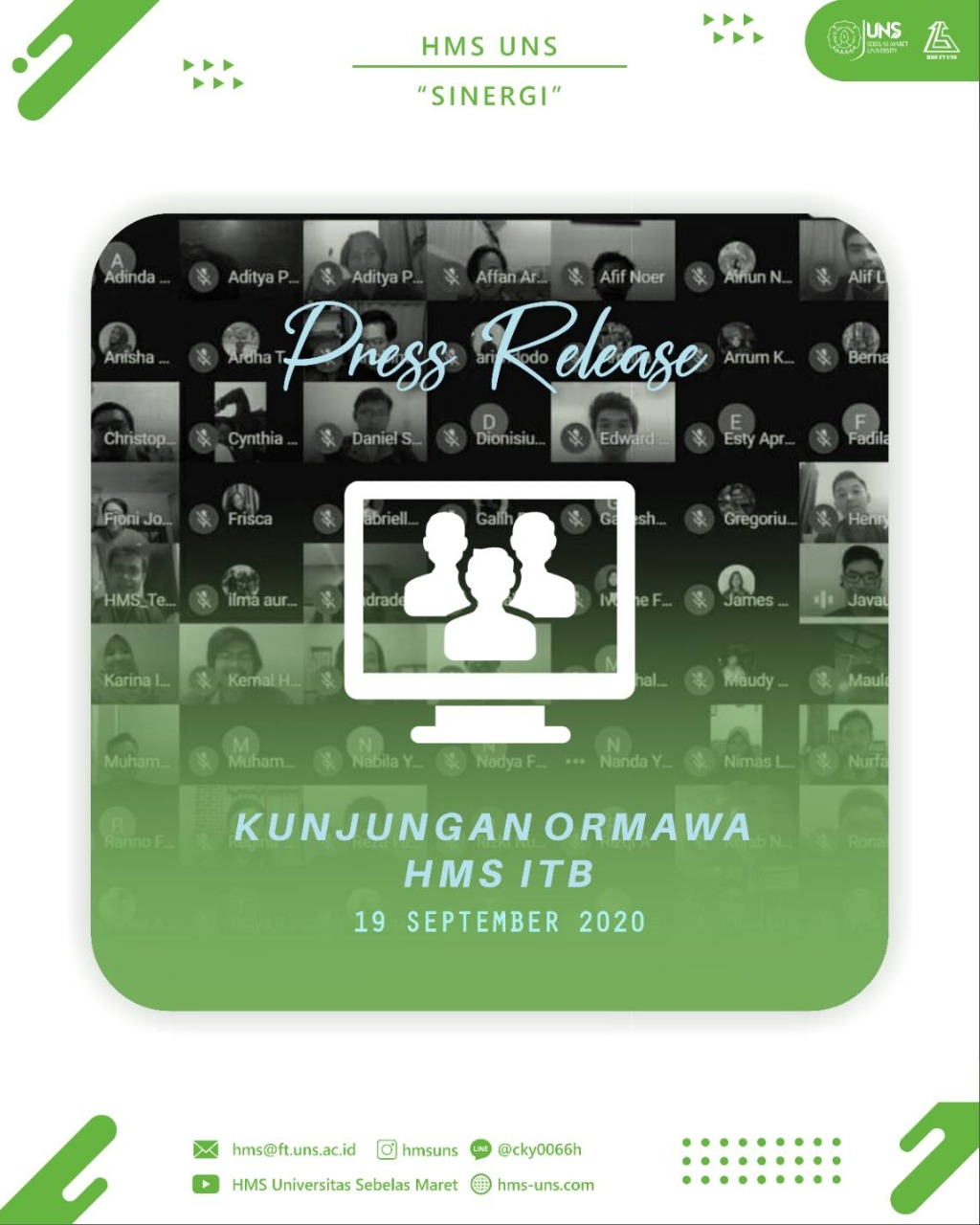 Surakarta, 19 September 2020 – Bidang Hubungan Masyarakat, Himpunan Mahasiswa Sipil Universitas Sebelas Maret telah melaksanakan